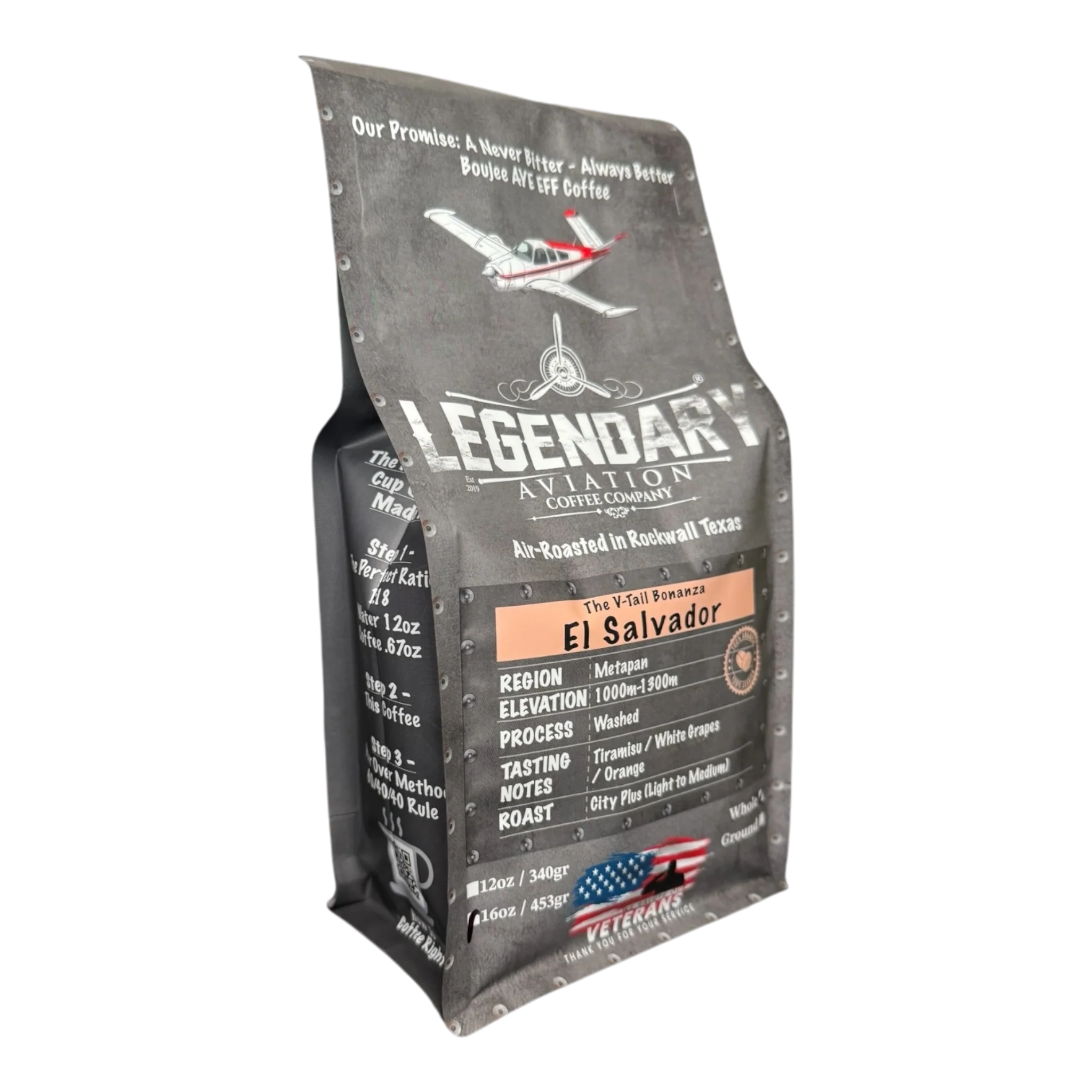 Experience the excellence of our V-Tail Bonanza El Salvador Coffee, inspired by the legendary Beechcraft Bonanza aircraft. Sourced from the Metapan region of El Salvador, this coffee is a tribute to craftsmanship and quality. Grown at elevations of 1000-1300 meters, our Pacas and Bourbon variety beans undergo a meticulous washed process, resulting in an impressive City Plus (Light to Medium) roast.